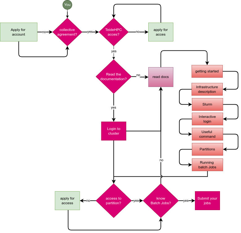 This page will guide you briefly to the documentation. If you follow the steps below you should have a good idea about the most important aspects of the TeideHPC cluster.