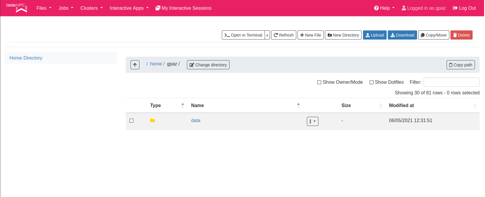 ¡Tu directorio home en TeideHPC tiene un límite flexible de 5GB! Recomendamos guardar sus datos en el directorio de datos o lustre