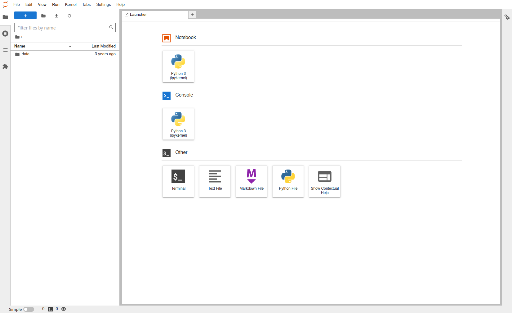 - Uso: Al lanzar JupyterLab, se abrirá una nueva ventana en tu navegador para trabajar con notebooks, código, y datos.